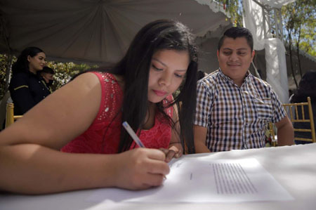 Con un hermoso paisaje más de 100 personas tuvieron a bien contraer matrimonio en un evento realizado por la comuna, esto en el parque ecológico de Paseo del Lago, ubicado en la zona 4 del Municipio de Villa Nueva.
