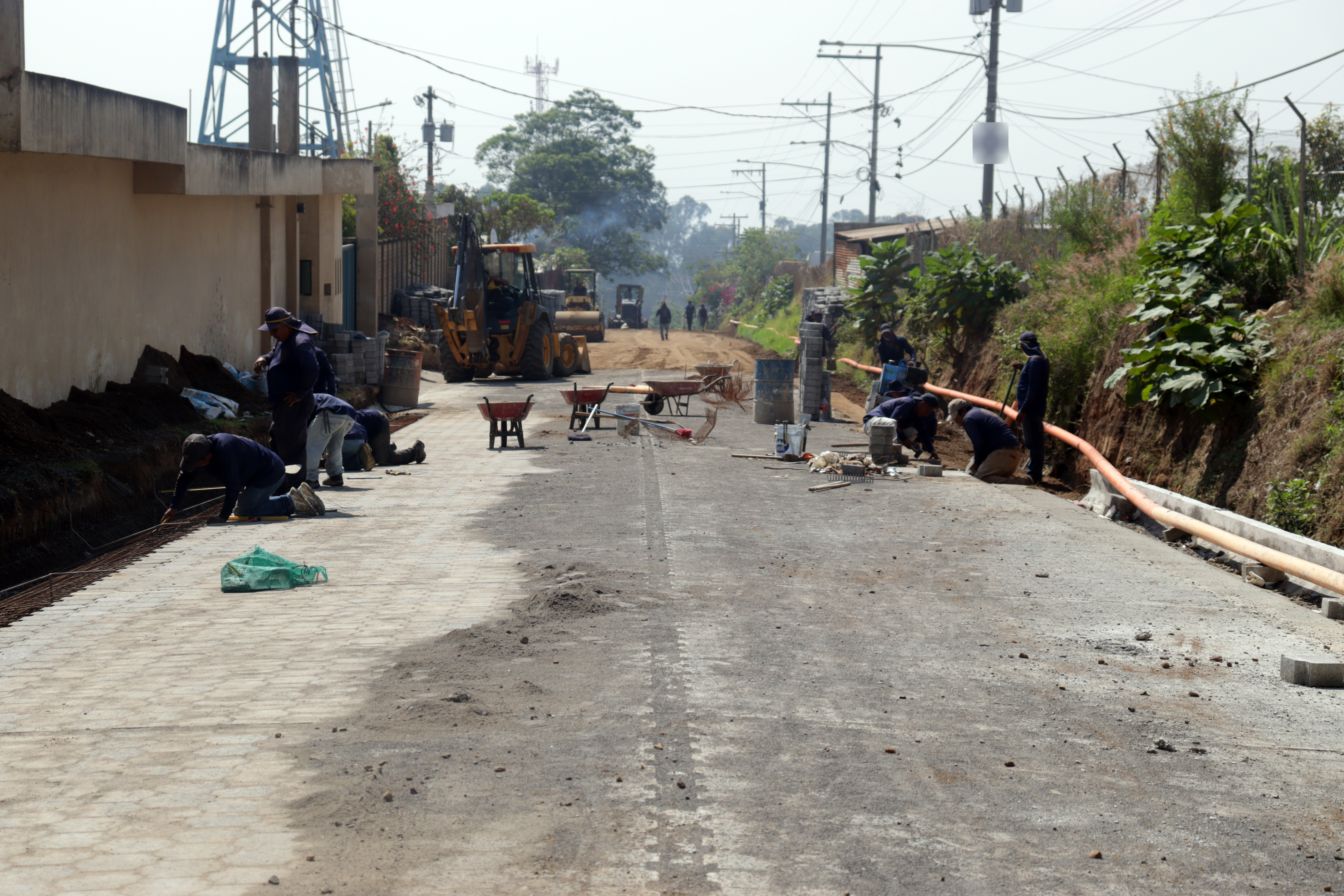La tercera fase del camino rural principal que lleva al cementerio Las Nubes en la zona 3 de Bárcena, avanza, para que en algunos días se culminen los trabajos que ya han dejado cientos de metros cuadrados con adoquín, favoreciendo la vida de los residentes y de transportistas que circulan por el sector.