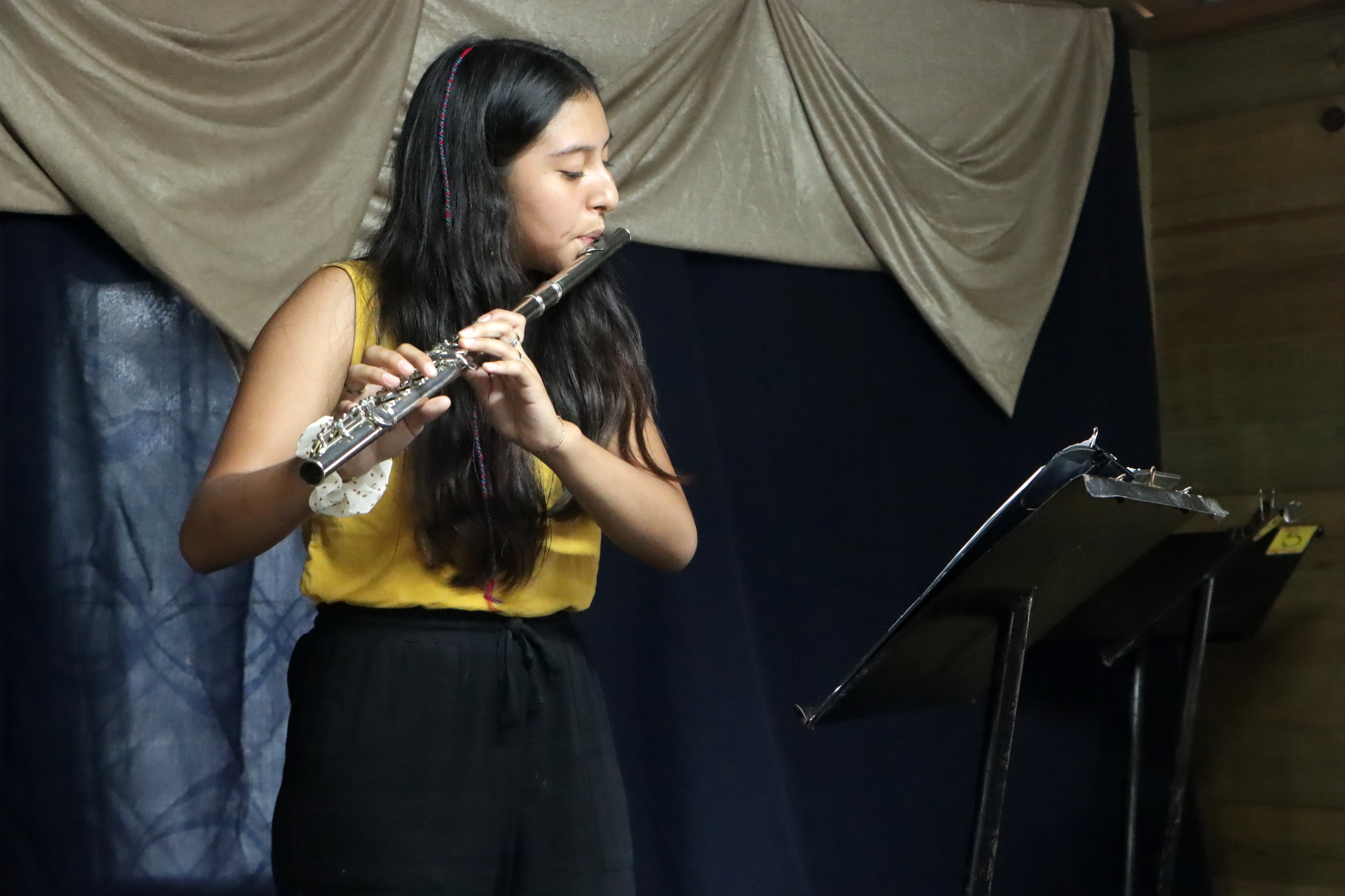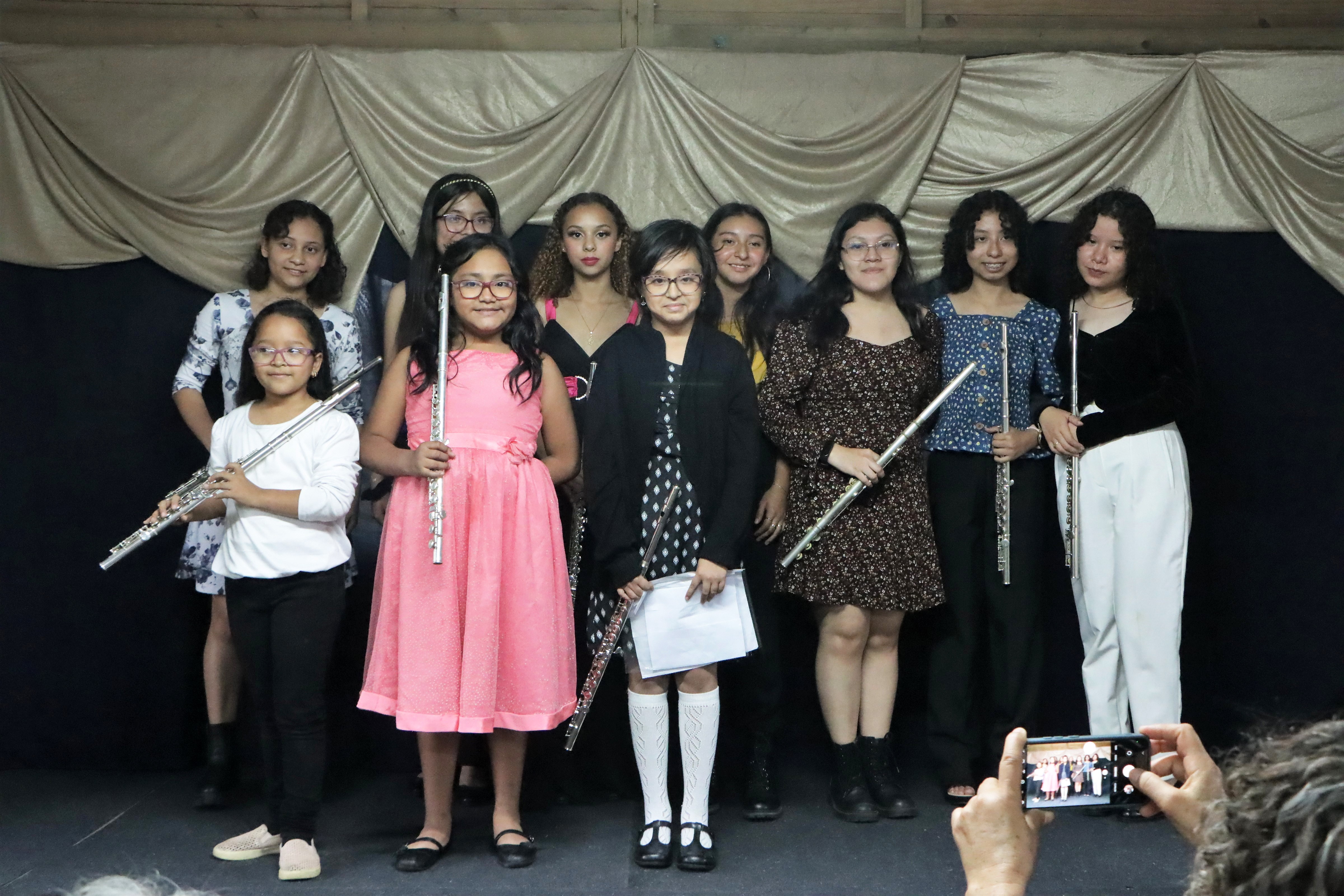 Como parte del acto de clausura, los estudiantes brindaron un espectáculo musical en donde interpretaron varias piezas musicales, deleitando de esa manera a su público y demostrando con ello la capacidad que tienen de poder tocar un instrumento y entonar canciones.